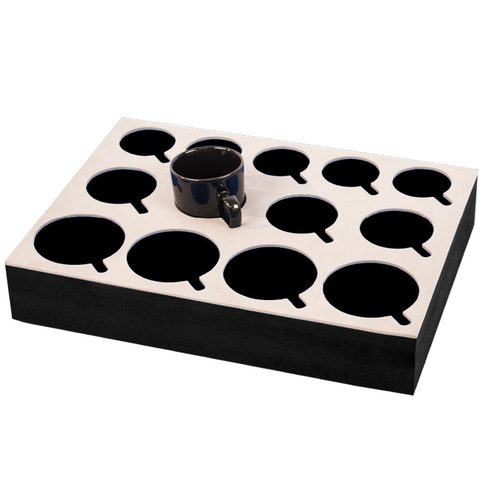 Geen rammelende kopjes en glazen meer tijdens het rijden. Geschikt voor 13 kopjes en/of glazen, ter bescherming tegen het breken. Door de 3 verschillende maten, altijd de juiste pasvorm. Geschikt voor elk keukenkastje door het formaat 34x35x6cm. Gemaakt van EVA materiaal. Licht gewicht. Afmeting van de openingen: 5cm, 6cm en 7,5cm.
