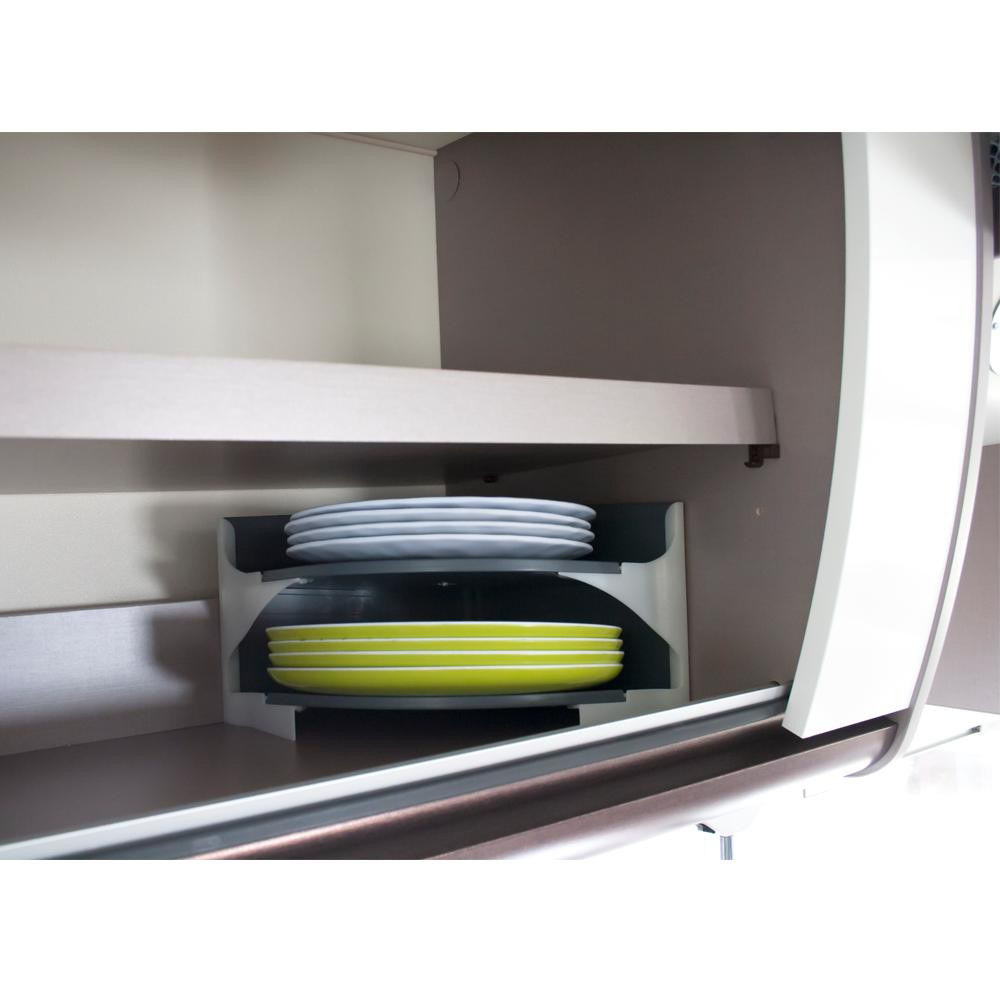 De PurVario Bordenhouder zorgt voor ruimtebesparing en is licht van gewicht. Nadat hij in elkaar is gezet kunt u de bordenhouder door de voorgeboorden gaten bevestigen aan de binnenzijde van het kastje. Tevens is het niet alleen te gebruiken voor het opruimen van de borden maar ook handig bij de afwas.