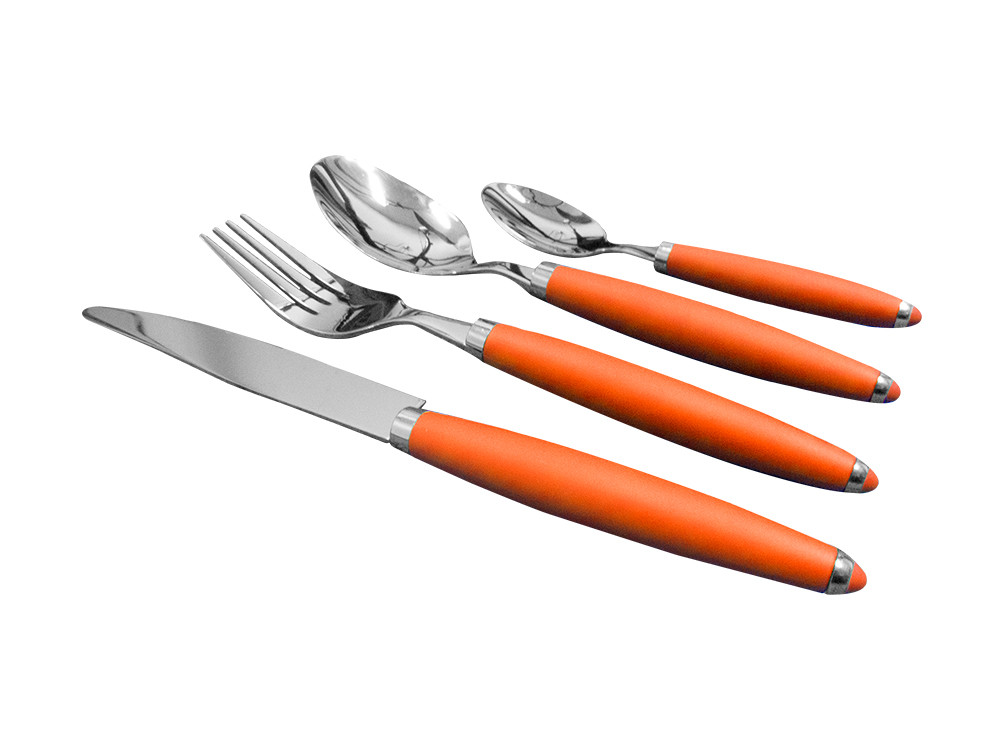 Een 16-delig bestekset bestaande uit 4 messen, 4 vorken, 4 lepels, 4 theelepels. Materiaal: ABS Soft Touch Finish, Edelstaal.