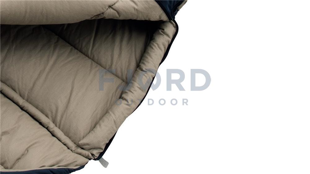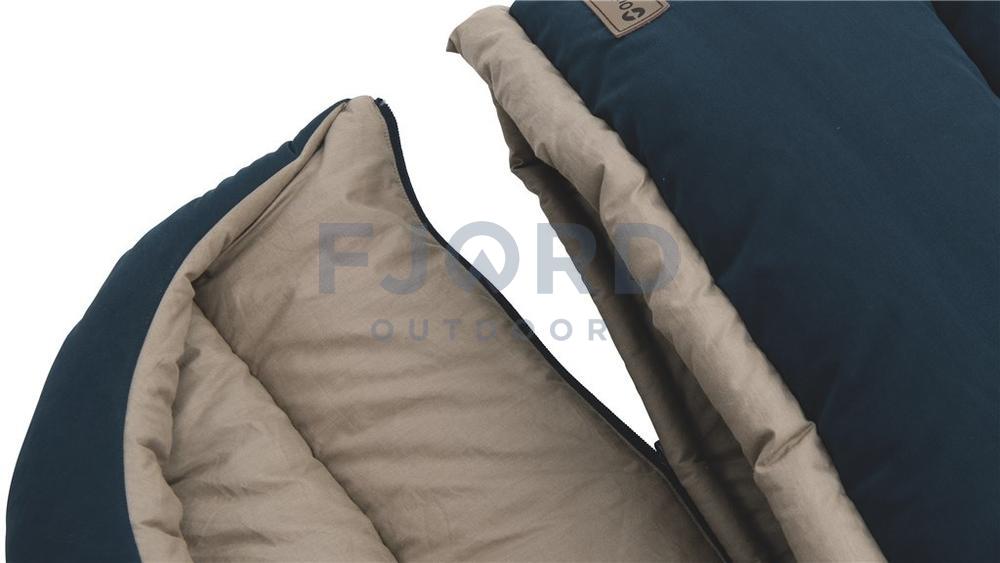 De slaapzakken hebben een duurzame, ultrazachte en geborstelde buitenkant en een voering van 100% katoen. De vulling bestaat uit premium Isofill zodat u ook op de camping geniet van puur comfort. Veel ruimte en de mogelijkheid om volledig open te ritsen en als groot dekbed te gebruiken. Rits YKK 2 manieren om te openen - autostop, L-vormig. Opbouw Enkellaagse